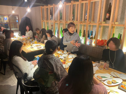 大家女子クラブでは初めての夜開催だったので、どれぐらい皆さん集まっていただけるか事務局としてはドキドキしておりましたが、なんと総勢15名もお集まりいただき、ベテラン部員さんも新米部員さんも和気あいあいとお酒を飲みながら楽しい時間を過ごさせていただきました♪